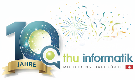 Die Zeit verfliegt, bereits fünf Jahre ist es her, seitdem die thuinformatik GmbH gegründet wurde. An dieser Stelle ein grosses Dankeschön an die treue Kundschaft für das entgegengebrachte Vertrauen sowie die gute Zusammenarbeit auf allen Ebenen.